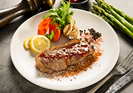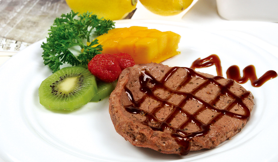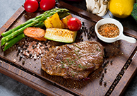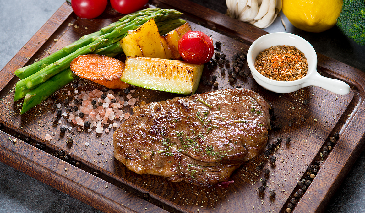 脊椎骨(7-11肋)兩側部位肉,部位肉酮體占3.6%,表面去風干肉、淤血肉及軟硬骨,保留自然脂肪,肉質紅白相間,呈大理石花斑紋狀,肉質細嫩,脂肪含量較高,香甜多汁,不干澀。