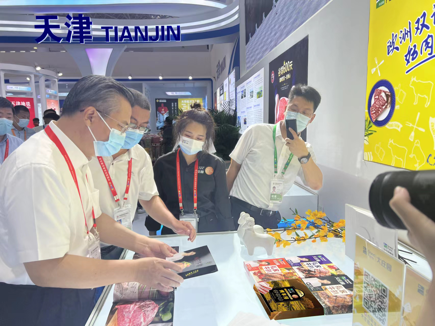 走近黑龍江省展區,黃色的展板上大莊園的代言明星賈乃亮和“歐洲雙認證 好肉大莊園”的宣傳語格外醒目,與整潔大方的展臺相映成輝,引來無數人駐足。