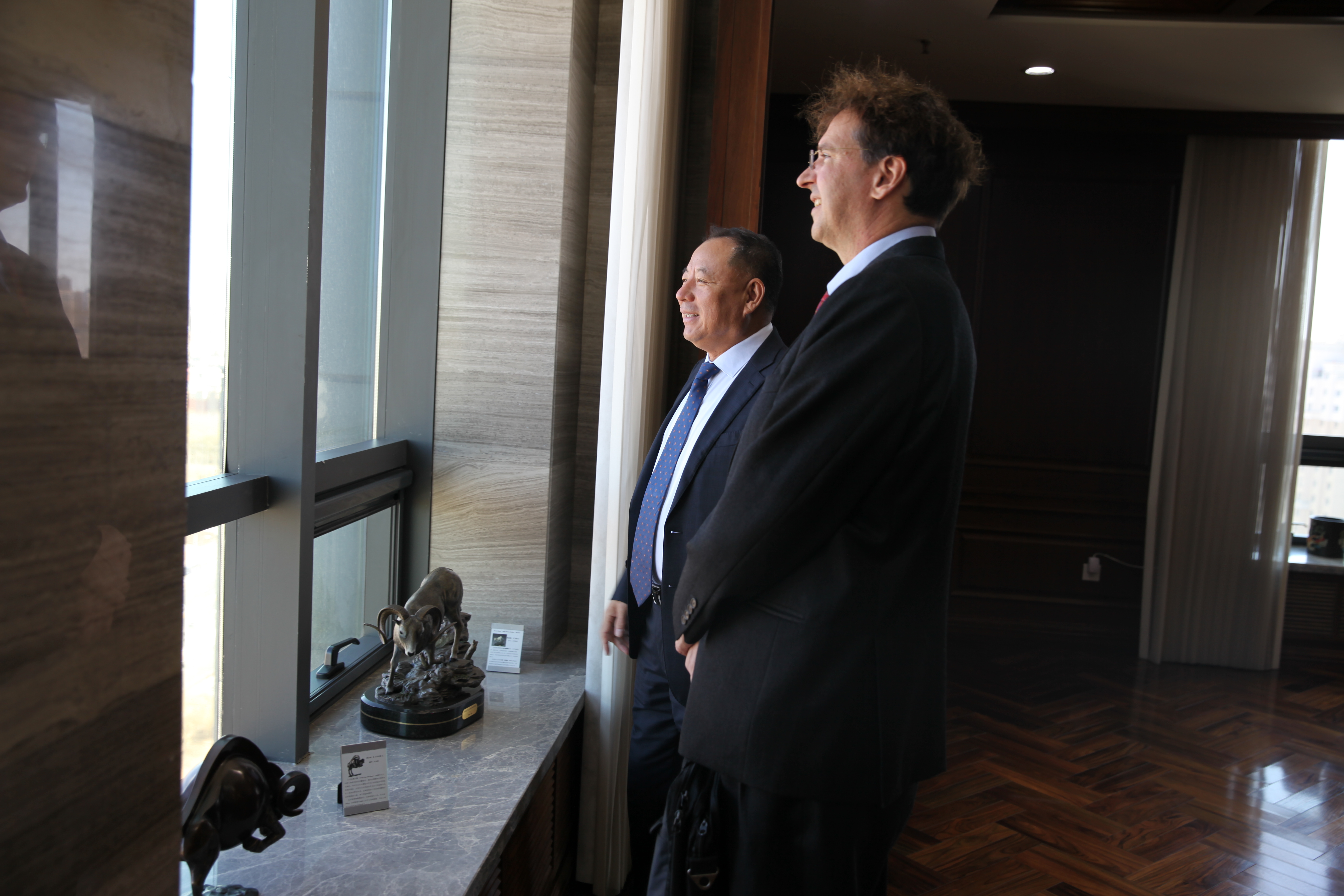 4月19日,首任澳大利亞駐沈陽總領事館總領事陳一白(Broughton Robertson)、澳大利亞駐沈陽總領事館領事白宇軒(Luke Coates)、澳大利亞駐沈陽總領事館商務處首席商務代表于丹(Fiona Yu)一行訪問了大莊園集團總部。