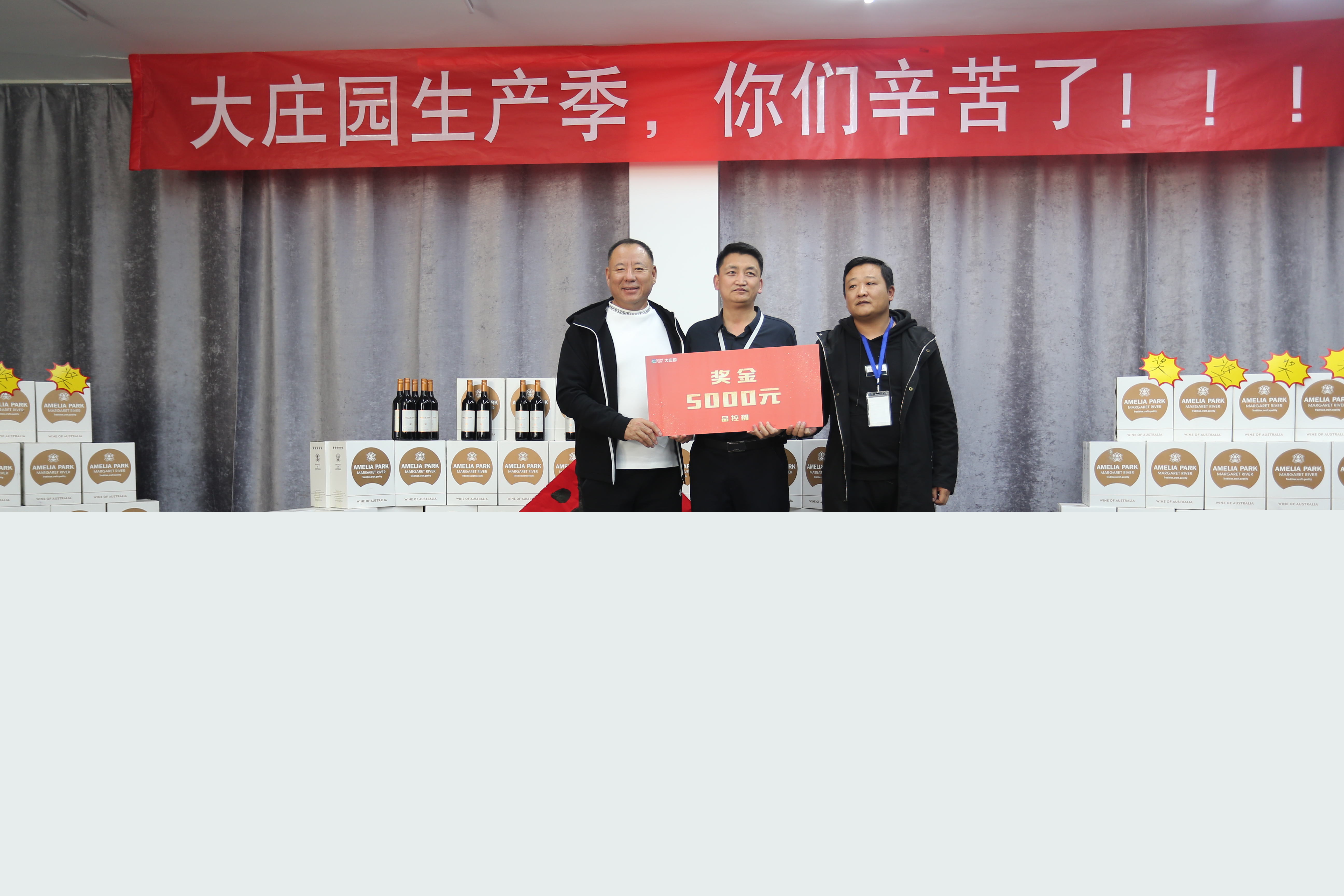在全場如雷的掌聲中,大莊園集團(tuán)董事長陳希濱先生向連續(xù)十五天達(dá)成7000+的“主力軍”:生產(chǎn)部、采購部、品控部和設(shè)備部頒發(fā)了總額為10萬元的獎金,向全體節(jié)日期間堅持奮戰(zhàn)在工作崗位的員工頒發(fā)了“專項(xiàng)獎勵”——每人兩瓶價值不菲的澳洲紅酒。