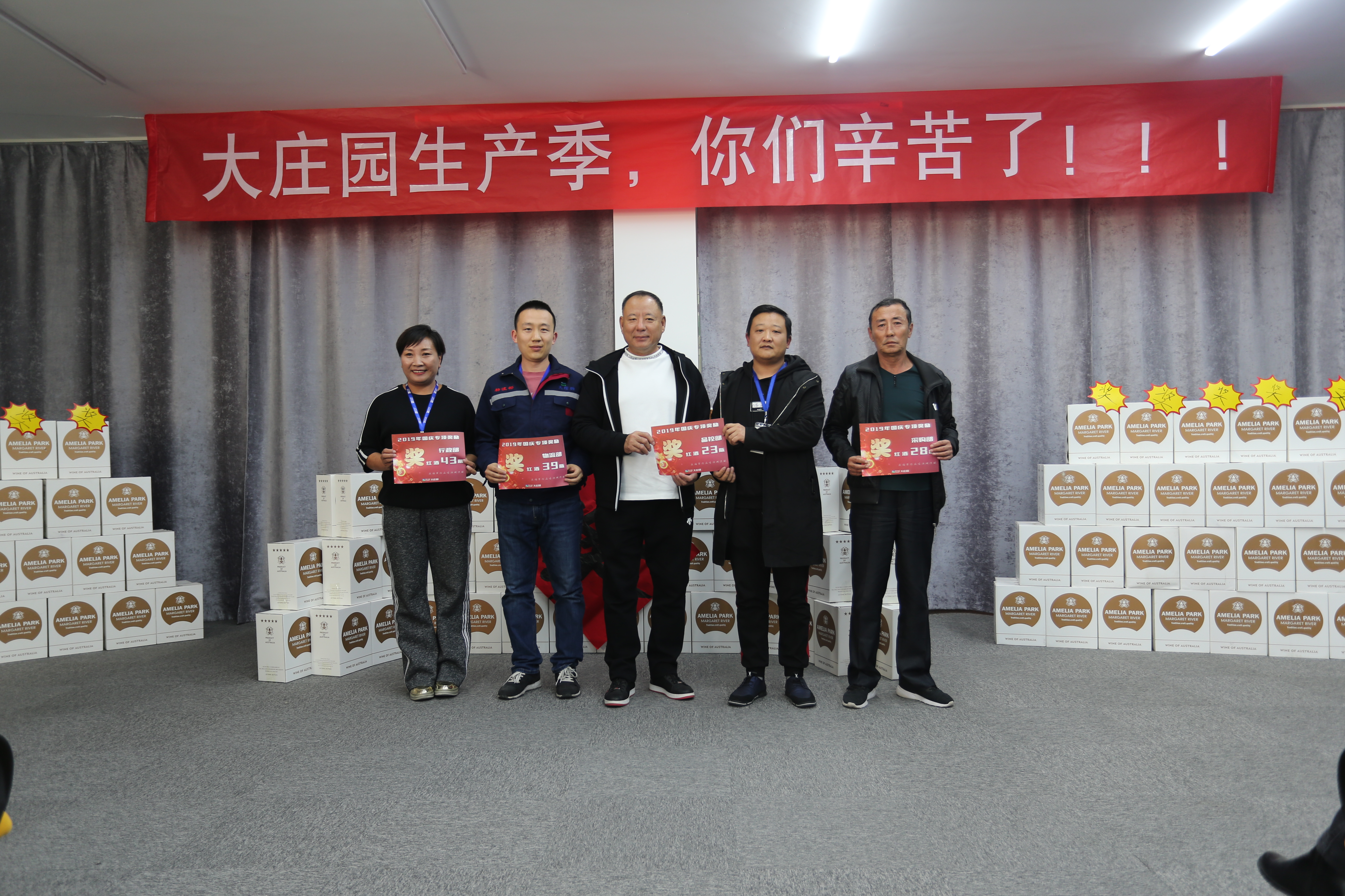 會場正中,高掛著“大莊園生產(chǎn)季,你們辛苦了!??!”的條幅,而紅酒墻上那個斗大的“獎”字更是直接點(diǎn)出了這次大會的主題。