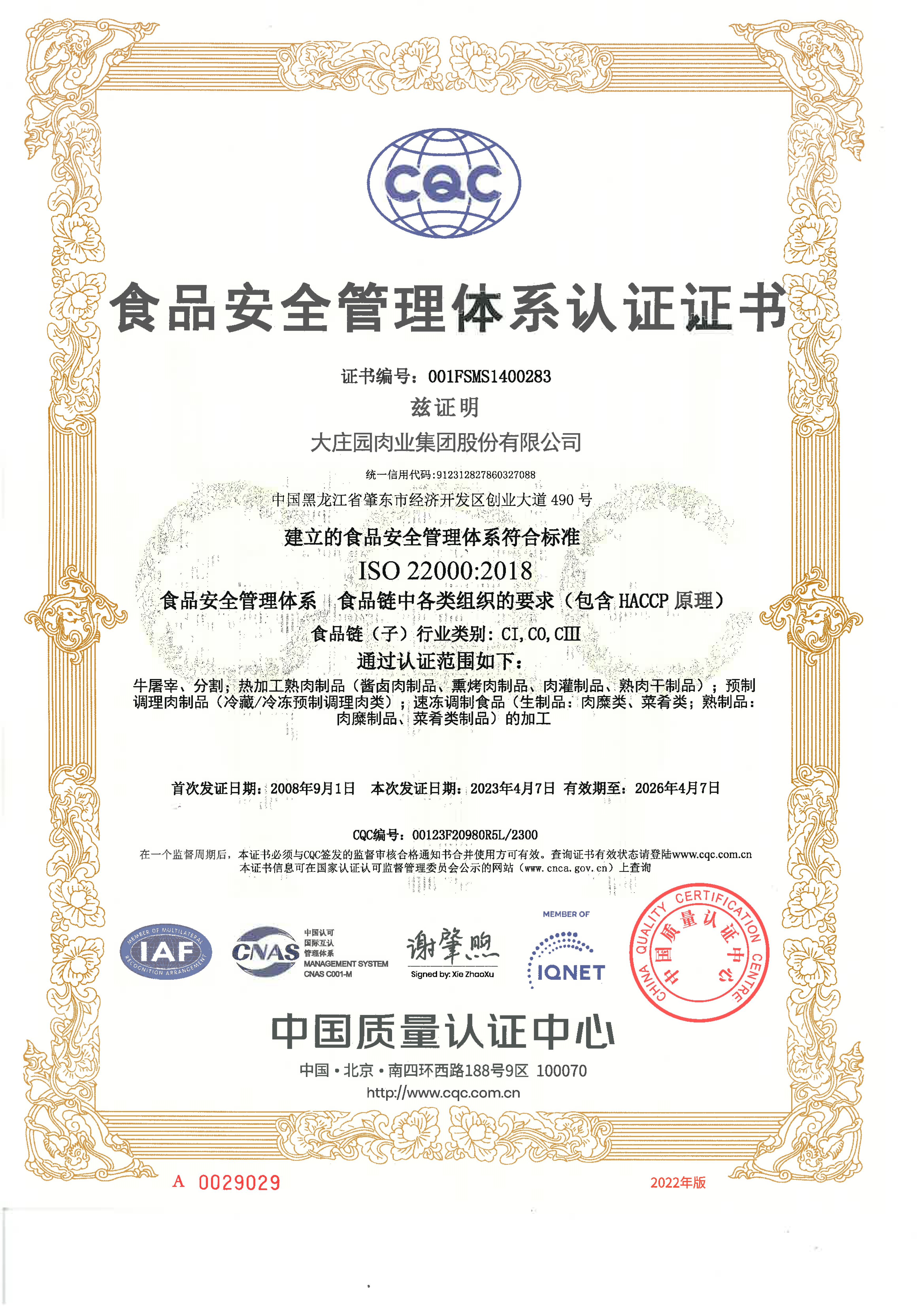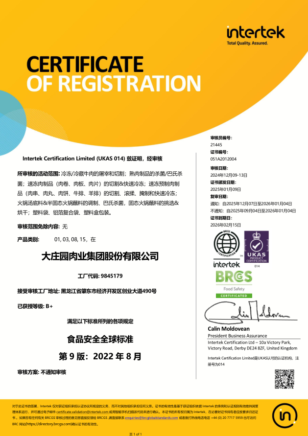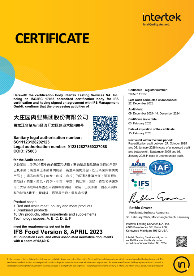 2021年1月,通過歐洲國際雙體系質量認證(BRCGS、IFS)。
