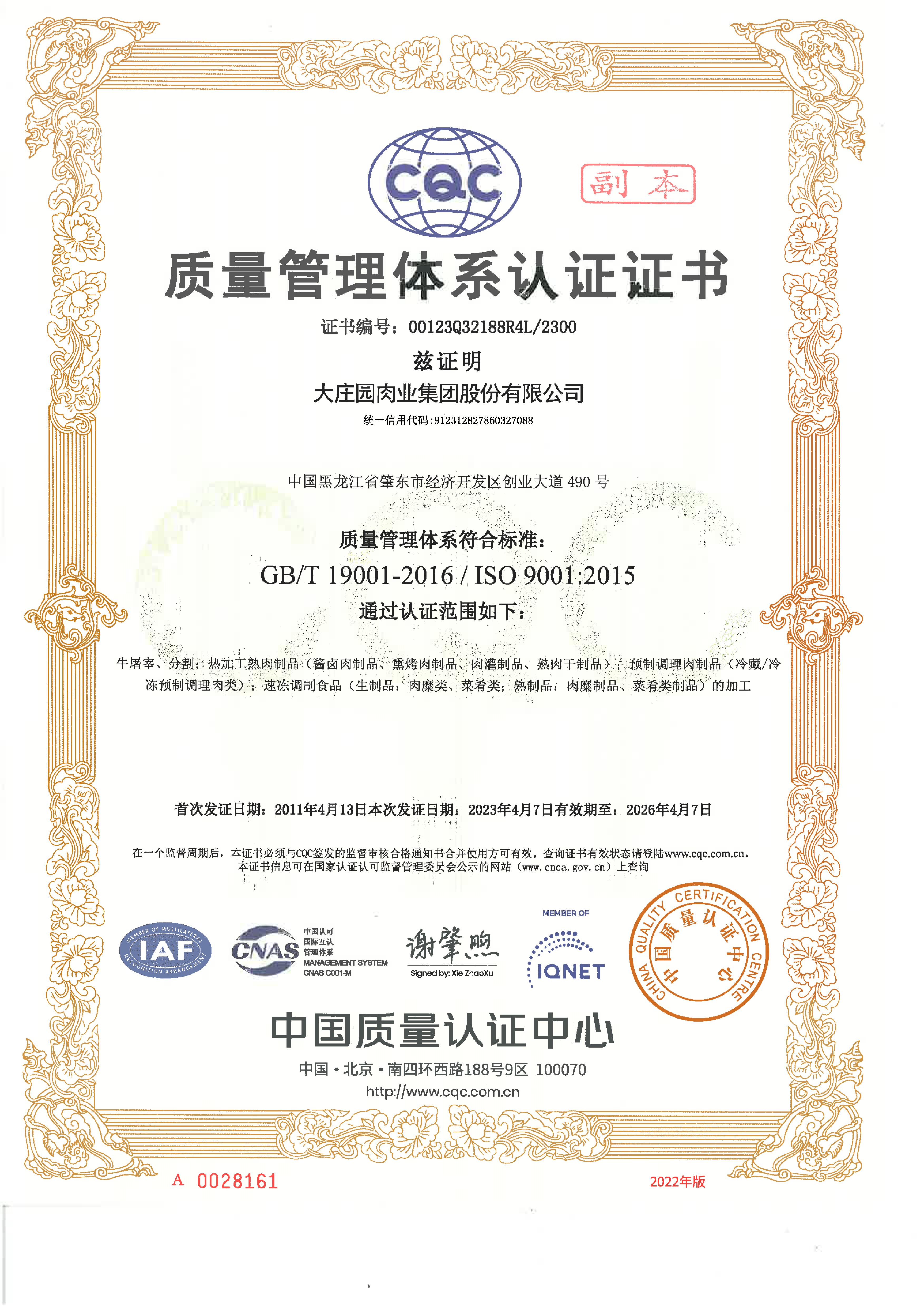 大莊園肉業(yè)集團股份有限公司的前身肇東大莊園肉業(yè)有限公司成立于2006年5月12日,于2020年12月26日整體變更為股份有限公司,注冊資本及股本為27,000.00萬元,辦公地址為哈爾濱市道里區(qū)群力第四大道與金江路交口處匯智廣場19至21層,注冊地址為黑龍江省肇東市經(jīng)濟開發(fā)區(qū)創(chuàng)業(yè)大道490號,法定代表人為陳希濱。