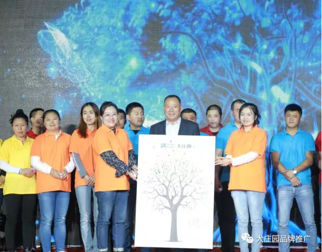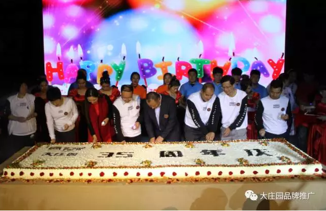長3米5的35周年生日蛋糕推至臺前,它代表莊園35年的事業(yè)步步高升,蒸蒸日上。現場700余名員工集體合唱《生日歌》,并且大莊園全體員工為董事長準備了一棵由每一位莊園員工的指紋組成的莊園樹。“一棵樹,一家人”代表著所有莊園人在大莊園這棵大樹下吸取養(yǎng)分,茁壯成長。